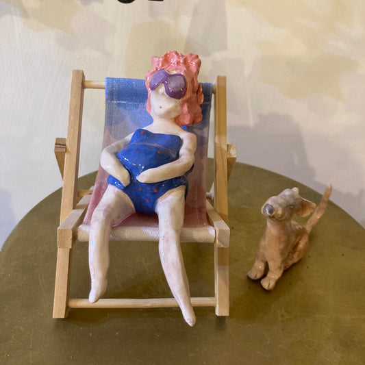 SEASIDE SERENITY: WOMAN WITH DOG SCULPTURE