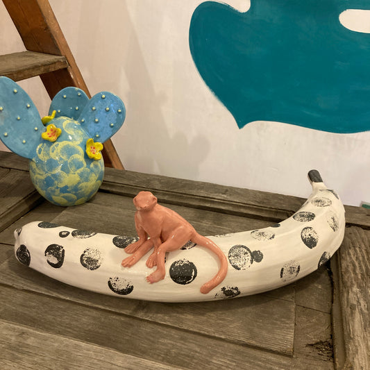 LITTLE MONKEY WITH BANANA SCULPTURE