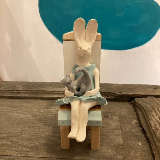 BUNNY WITH KITTEN SCULPTURE